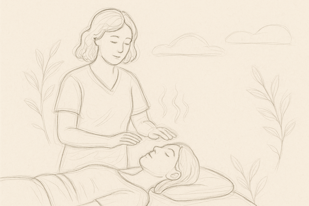 Terapia – zwykle około 60 minut. Klient leży lub siedzi w wygodnej pozycji, a ja prowadzę przepływ energii Reiki zgodnie z rytmem Twojego ciała i systemu energetycznego.
